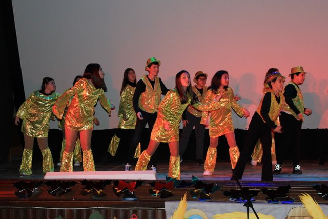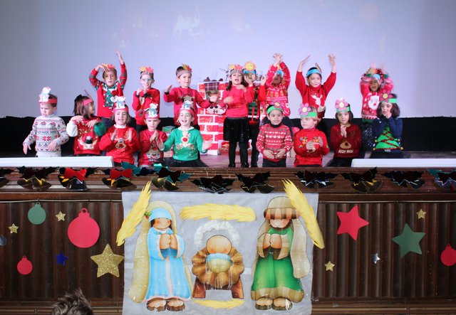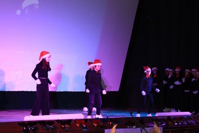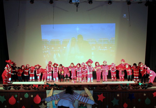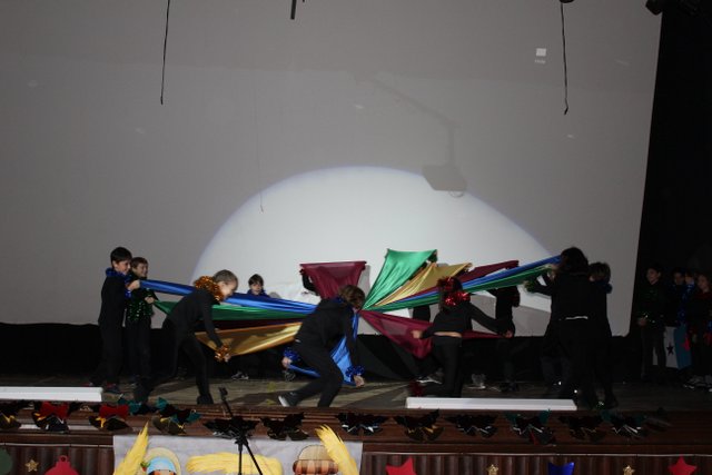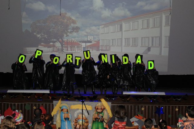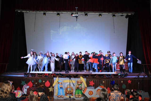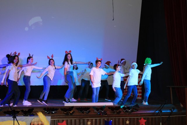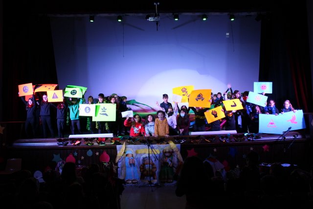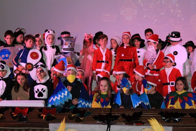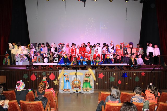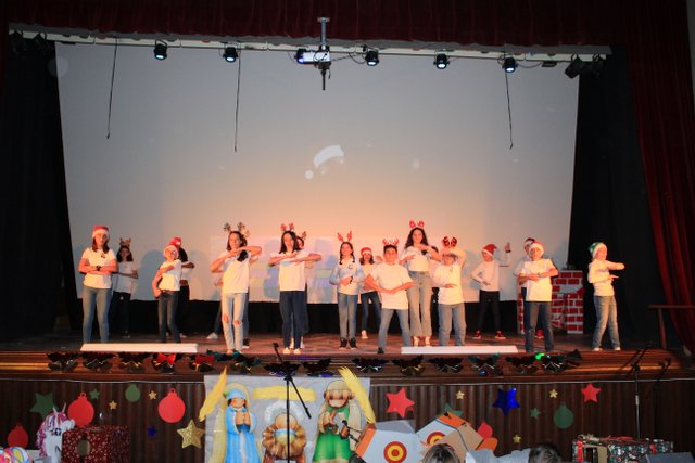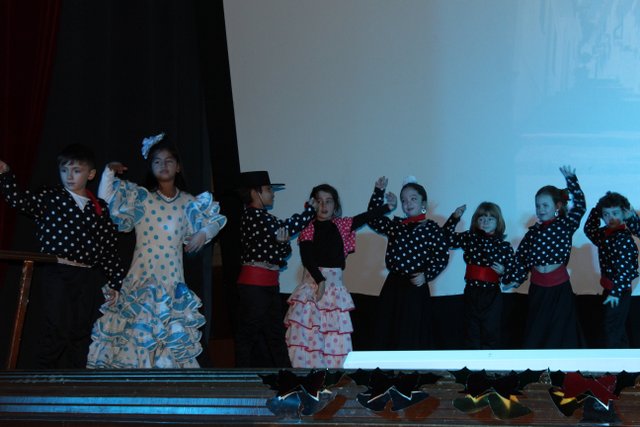 Los niños y niñas de Infantil y primaria llenan de ritmo y alegría el teatro del colegio.
