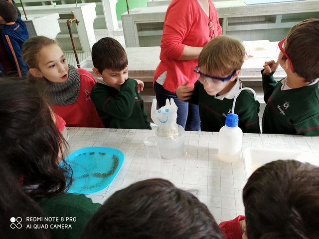 Los alumnos de 1º de Primaria, hemos acudido al laboratorio del colegio, para poner en práctica los contenidos aprendidos sobre el aire y el agua.