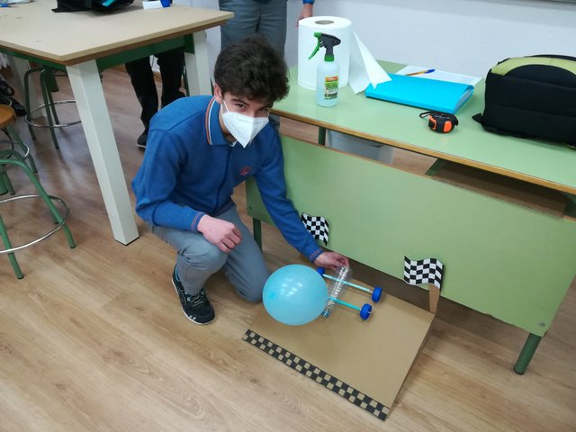 Se trataba de que los vehículos recorrieran la máxima distancia posible. Para ello, los alumnos han ingeniado vehículos de todo tipo, algunos con sistemas de propulsión hechos con gomas y globos.
