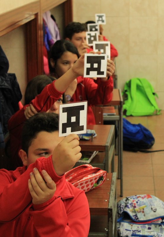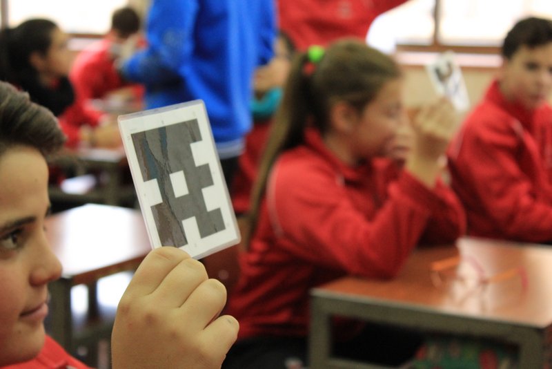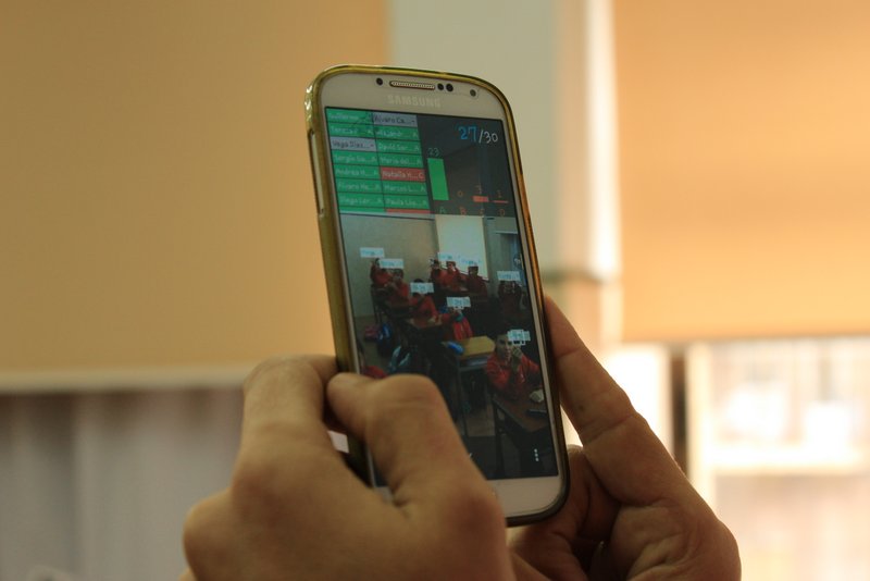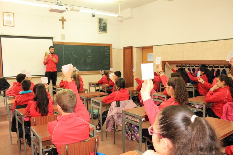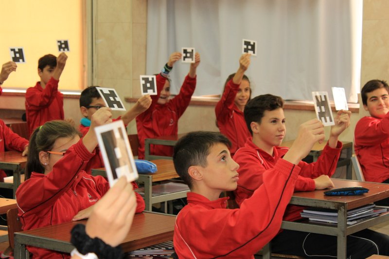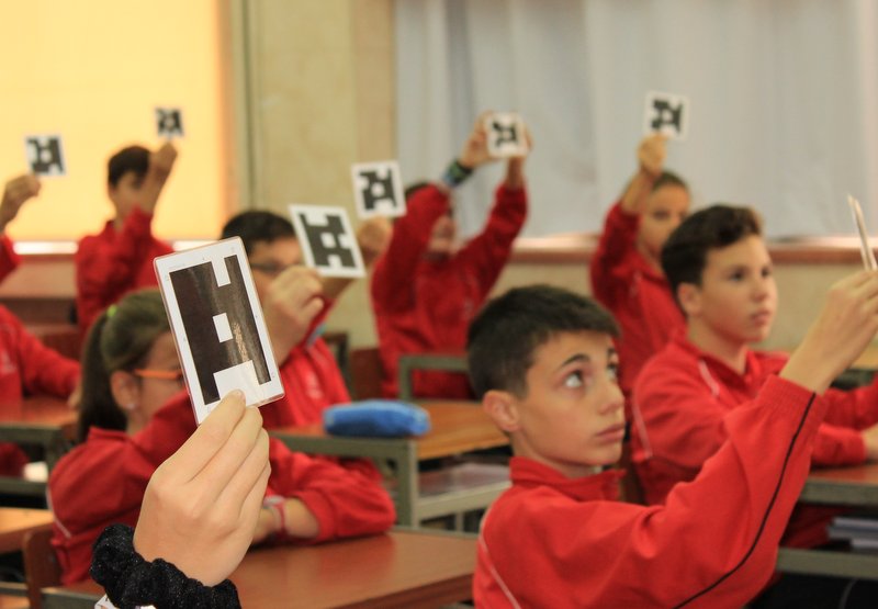Tan solo han necesitado unas tarjetas que debían colocar en función de la respuesta que consideraran correcta.  El profesor con un dispositivo móvil capta todas las respuestas para después evaluarlas.