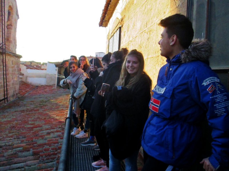 La parte final de la visita llevó a los alumnos por los espacios no visitables, que pudieron contemplar el coro, las estancias sobre los accesos al templo y el recorrido sobre la cubierta, que permitió ver de cerca las espadañas y disfrutar de las extraordinarias vistas de la ciudad desde la parte superior de la cabecera, protegida con un tejado sobre las bóvedas.