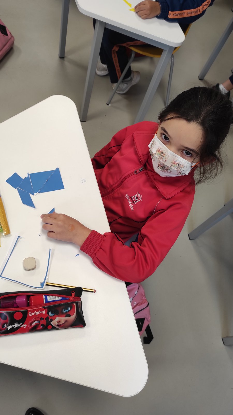 Los alumnos practican la construcción de diferentes figuras geométricas, así como la medida de distintos tipos de objetos del colegio y los tipos de líneas y ángulos que conocen.