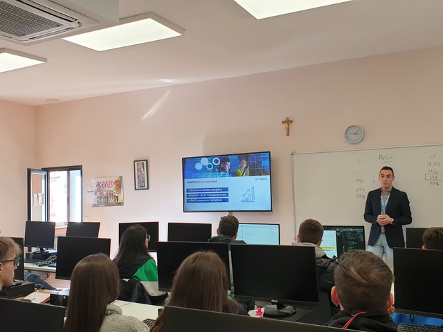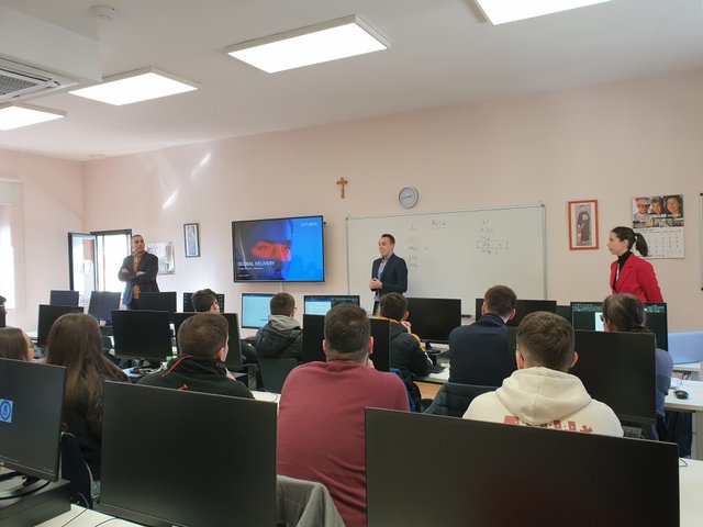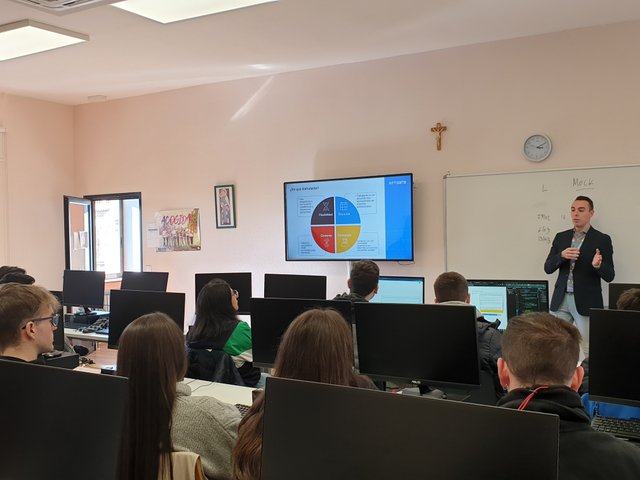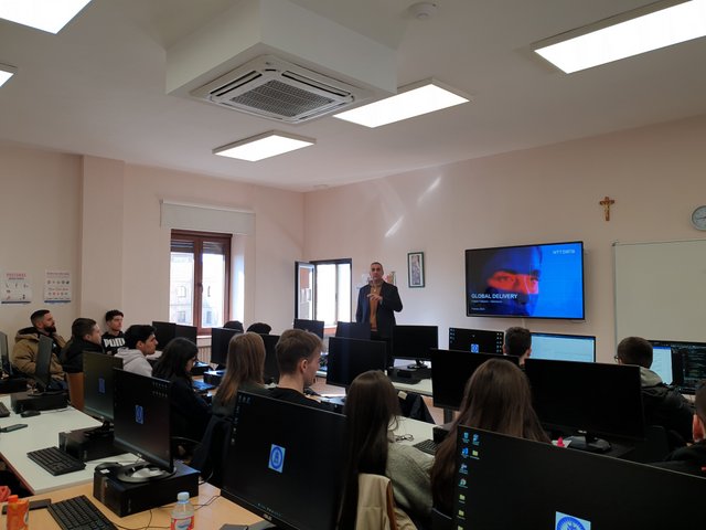 Los alumnos y alumnas del ciclo superior Desarrollo de Aplicaciones Web han tenido la suerte recibir la visita de Óscar Núñez, manager en el área de banca NTT Data; Imelda Cuéllar López e Israel Herrera González, IT recruiters de NTT Data.