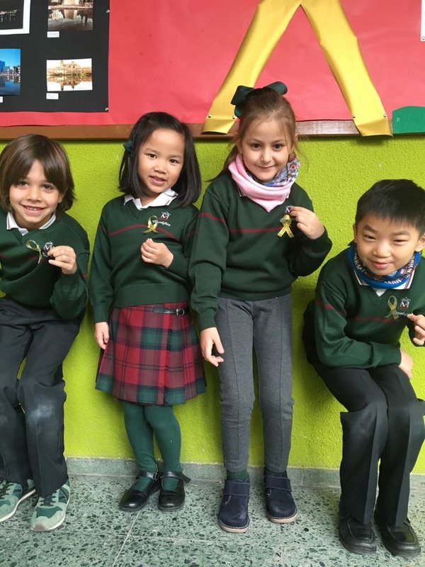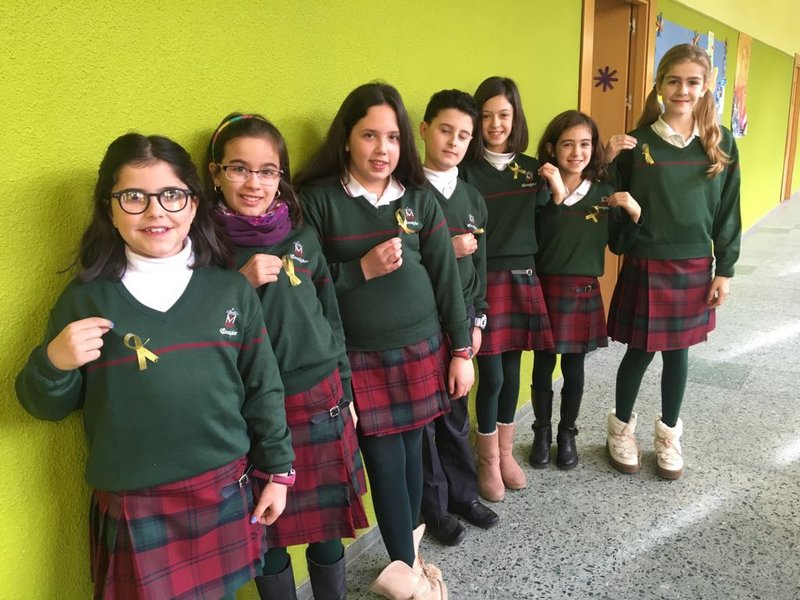 El Colegio Calasanz ha participado en la campaña de sensibilización que promueven Pyfano, bajo el lema “Nunca crecer, antes de tiempo” y  con el lazo dorado, símbolo del cáncer infantil.
