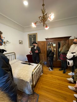 La última parada de nuestro paseo ha sido la casa que habitó el escritor al final de su vida, ubicada en la calle Bordadores, concretamente junto al ábside del convento de las Úrsulas.