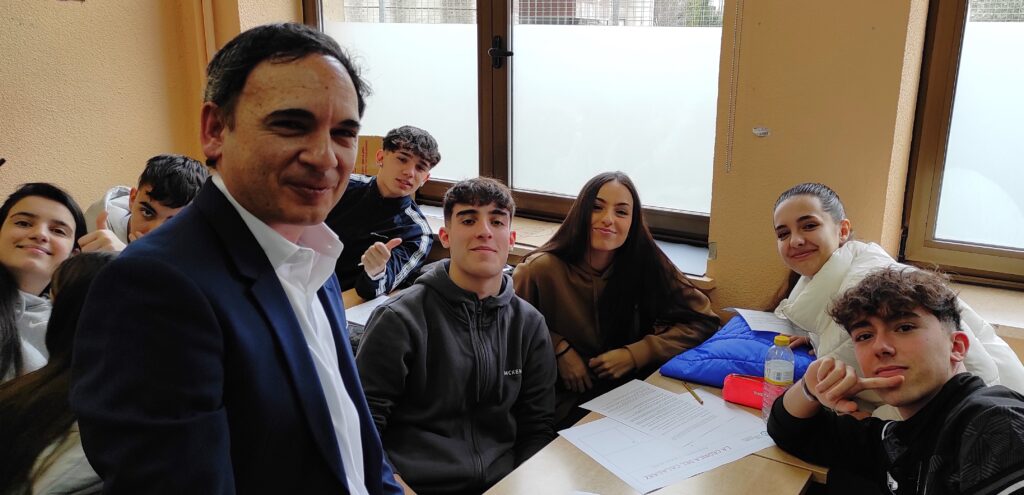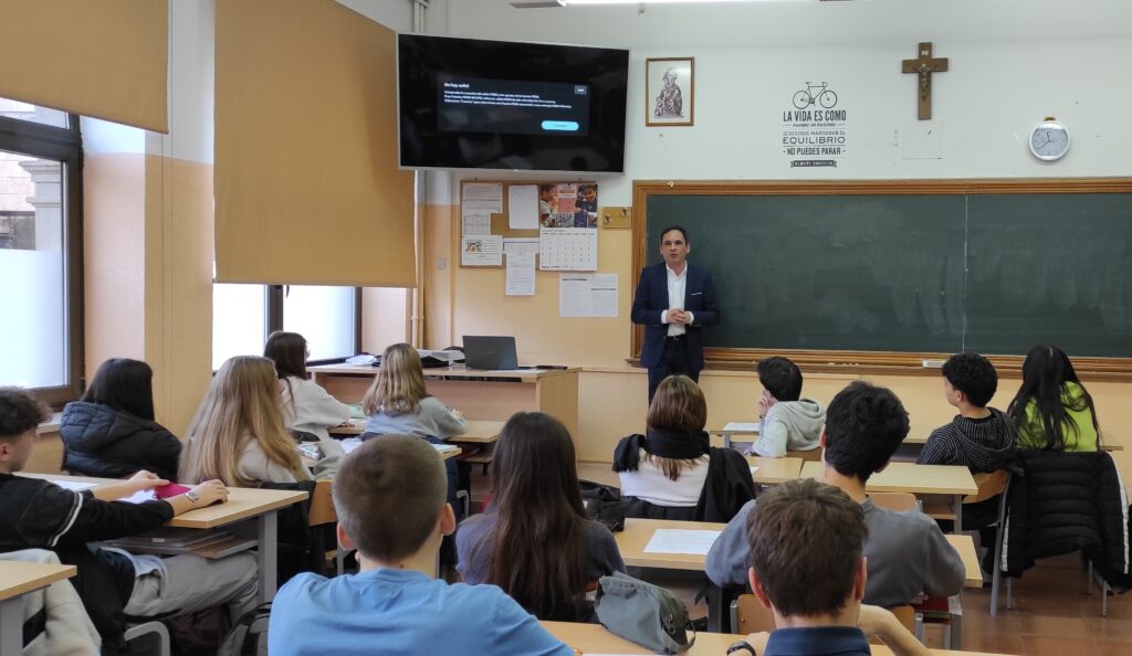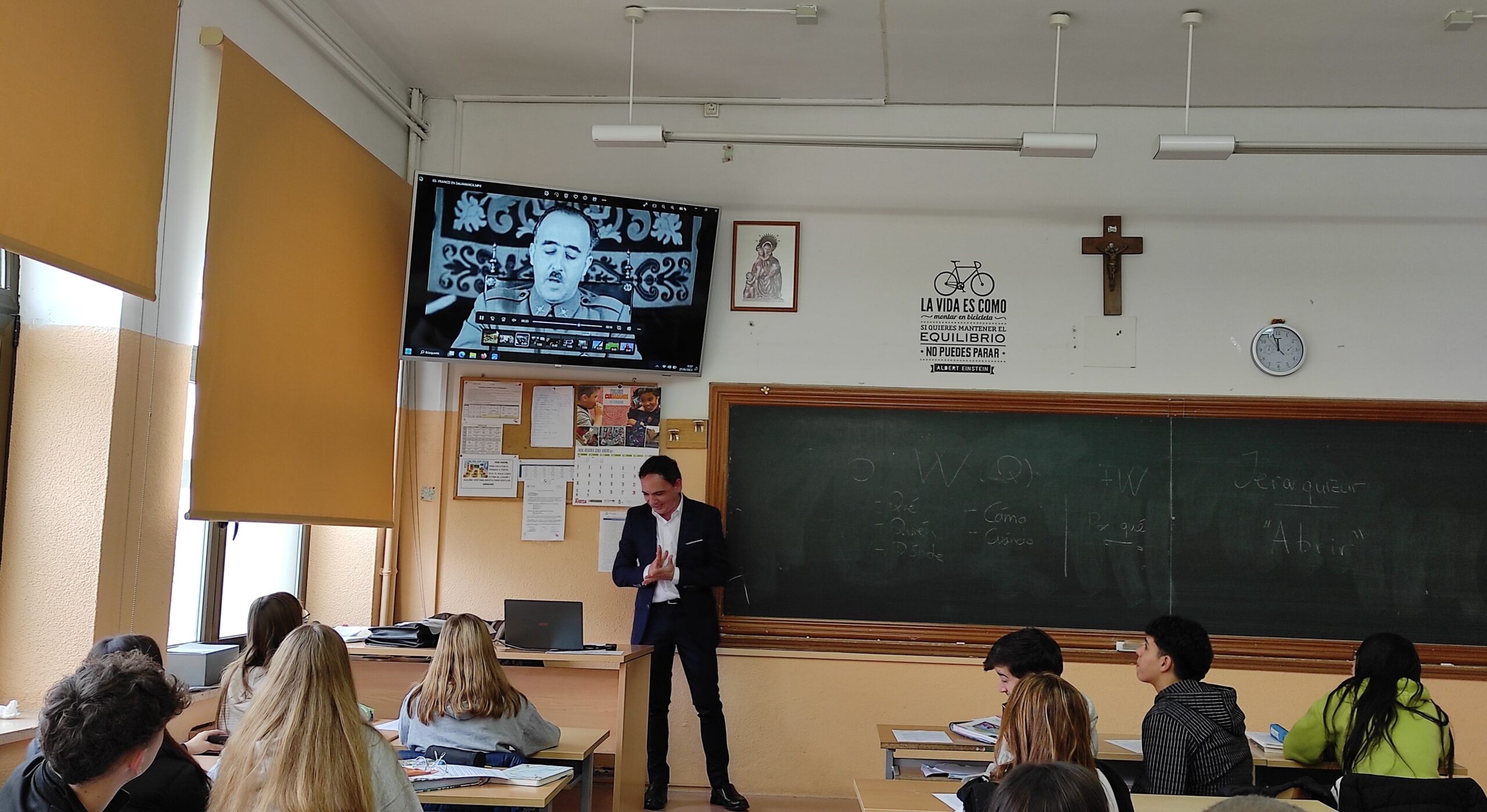 Los alumnos de Ciencias Sociales y Humanidades de 1º de Bachillerato, estudiantes de Historia del Mundo Contemporáneo, tuvieron la oportunidad de compartir una clase con el periodista Paco Gómez, presentador de los informativos locales en la Televisión de Castilla y León (La 8).