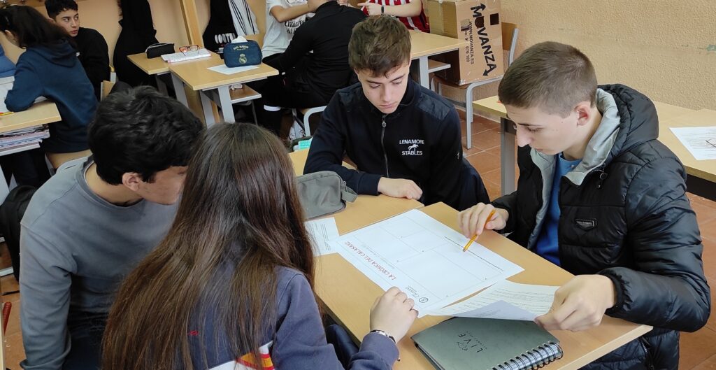 La segunda parte de la clase fue práctica y tras la exposición por parte del periodista de diez noticias con repercusión histórica, los alumnos realizaron por grupos el boceto de un periódico poniendo en práctica lo que habían aprendido.