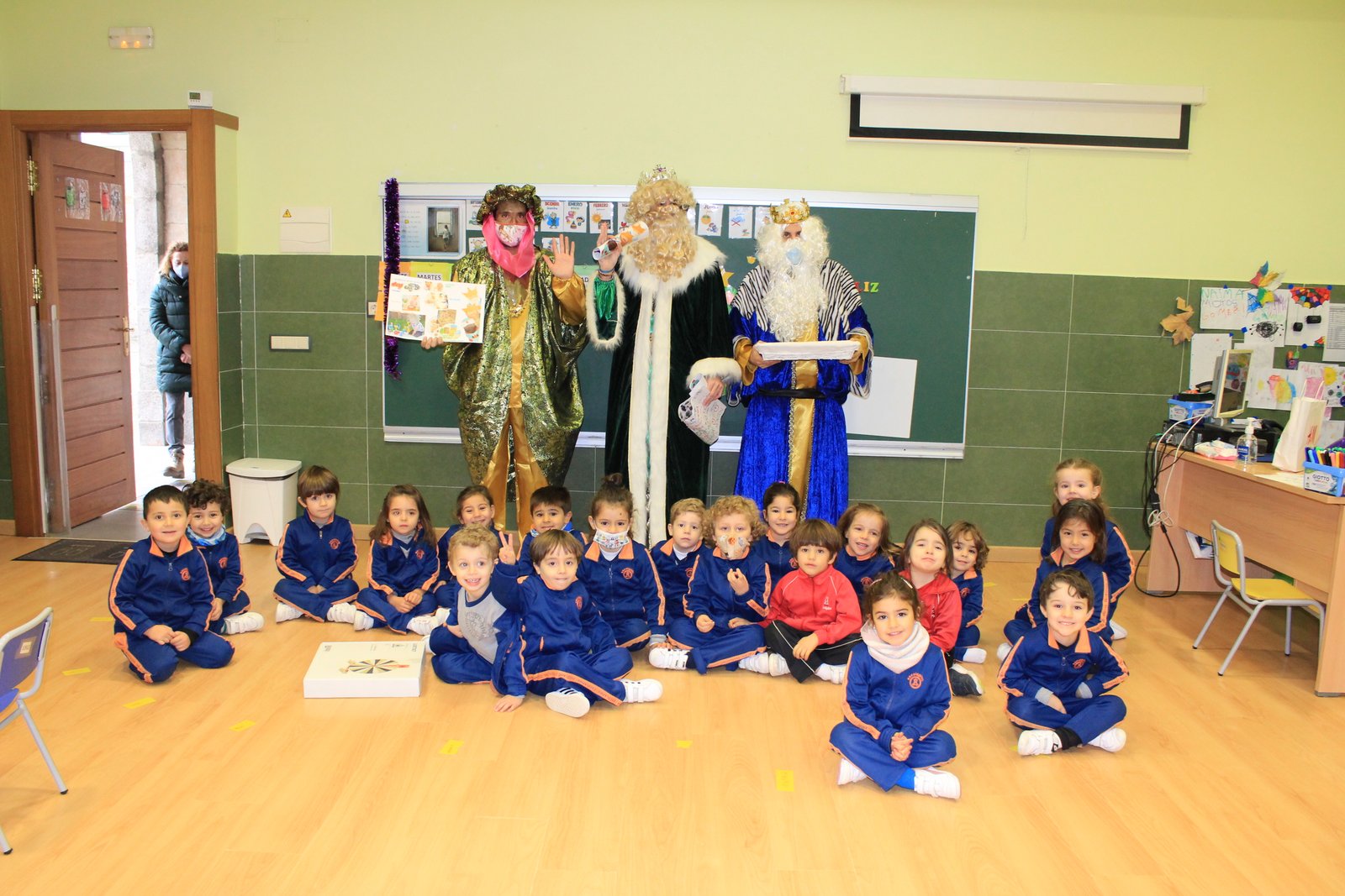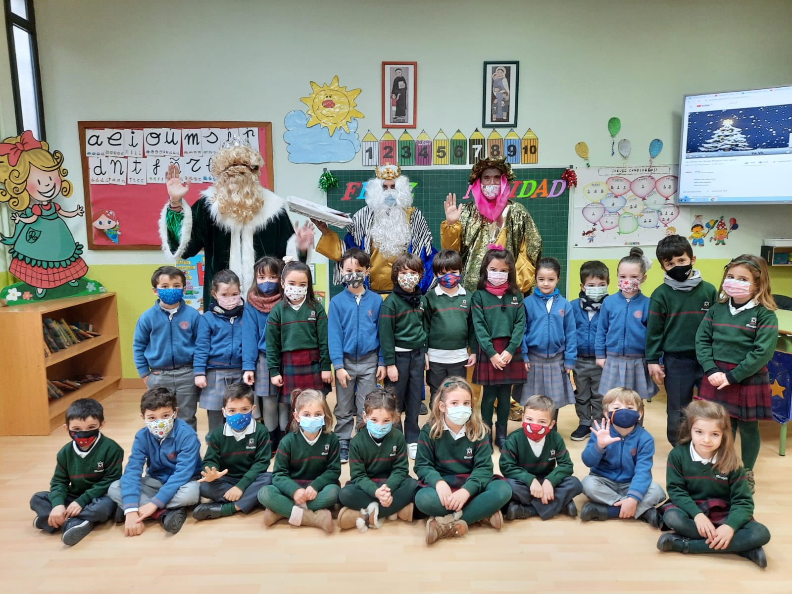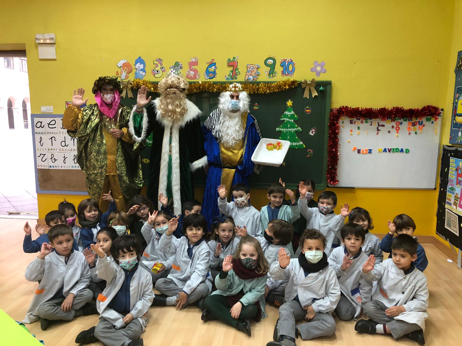 Hoy han llegado los Reyes Magos al colegio Calasanz, entre villancicos y unos pocos nervios los niños y niñas les han recibido en el aula. Todos se han portado muy bien, y sus majestades les han dejado un regalo para la clase y una estrella traída de oriente para cada niño.
