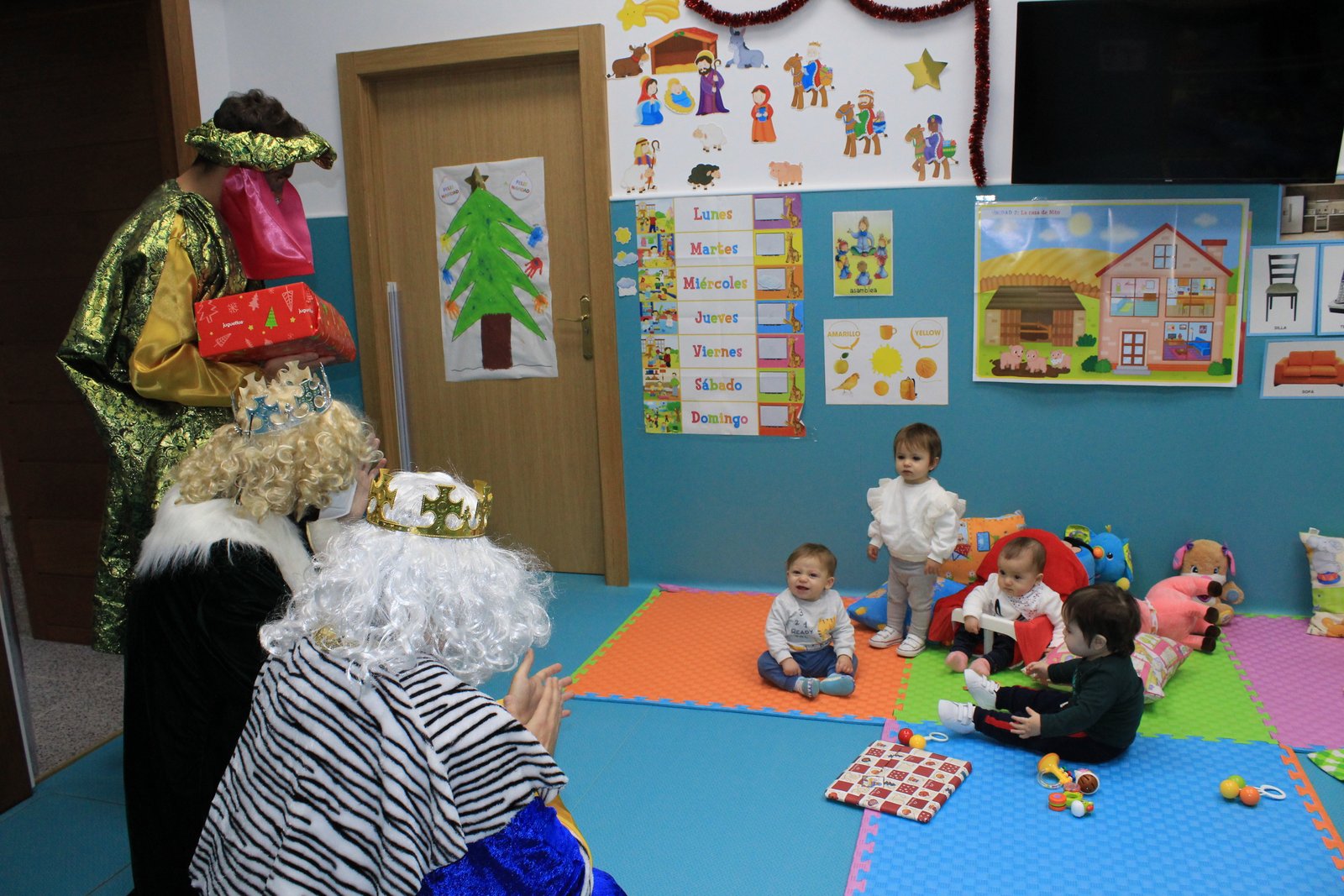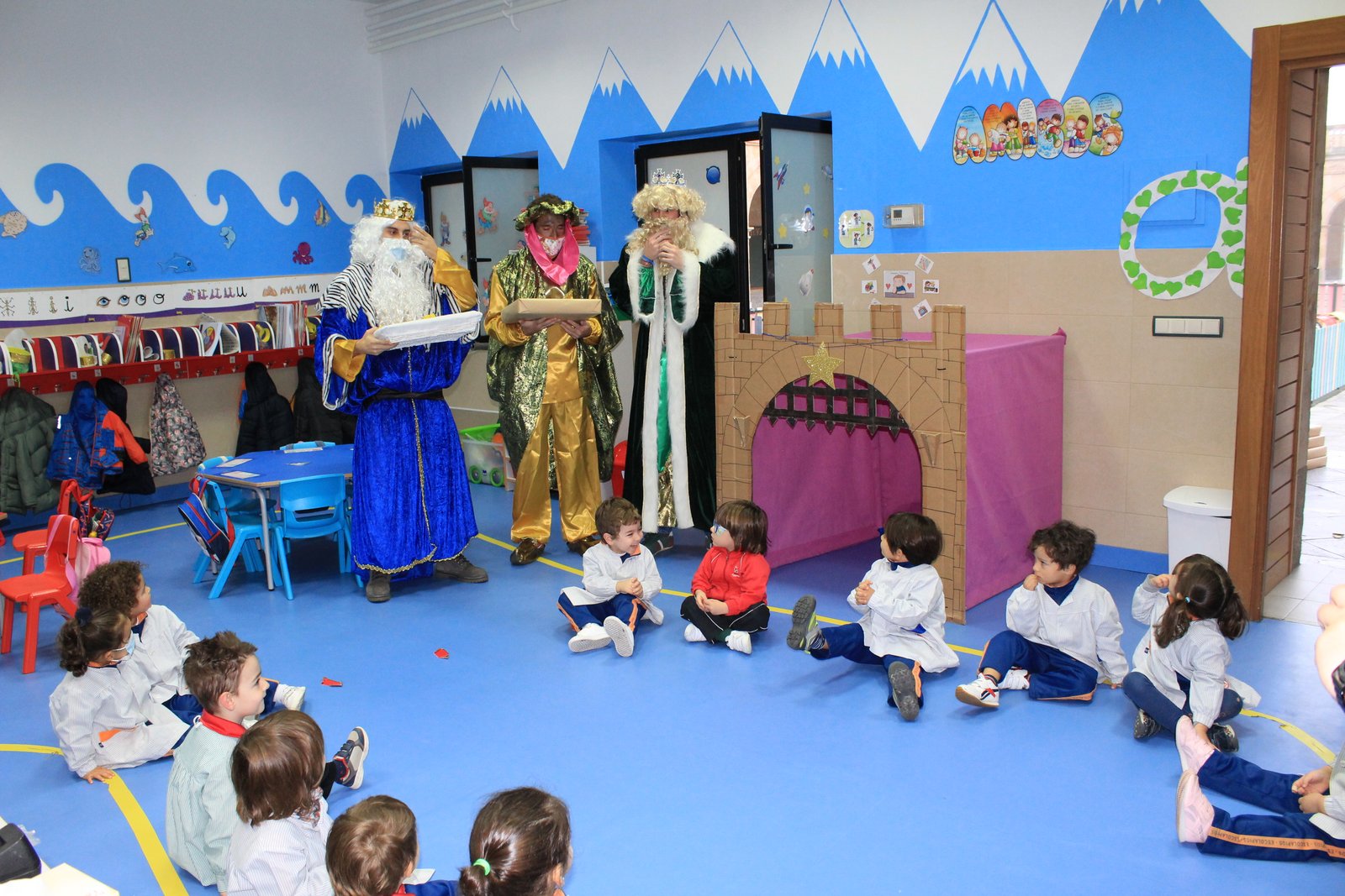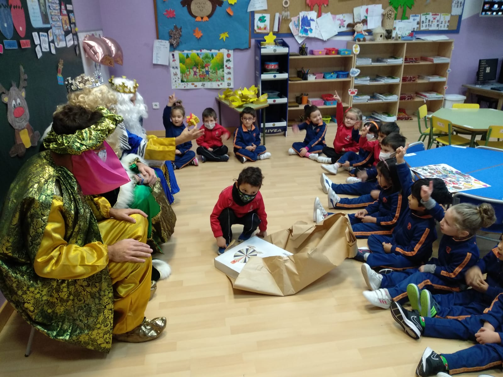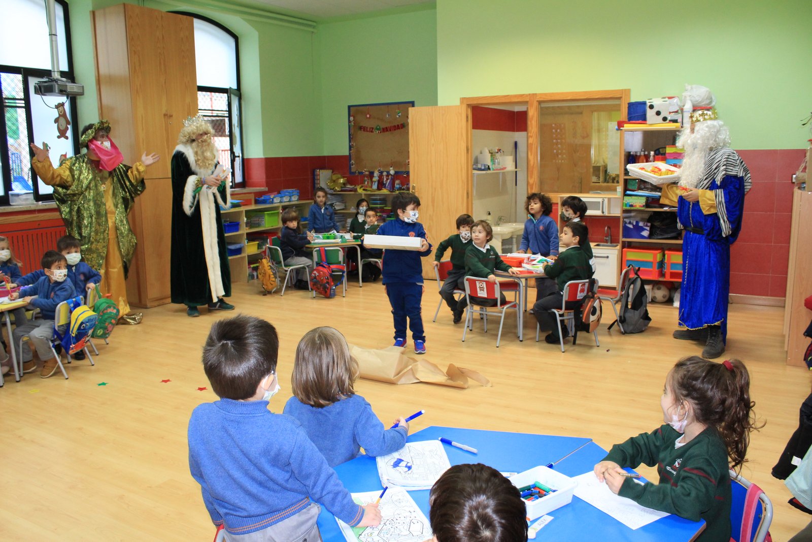 Hoy han llegado los Reyes Magos al colegio Calasanz, entre villancicos y unos pocos nervios los niños y niñas les han recibido en el aula. Todos se han portado muy bien, y sus majestades les han dejado un regalo para la clase y una estrella traída de oriente para cada niño.