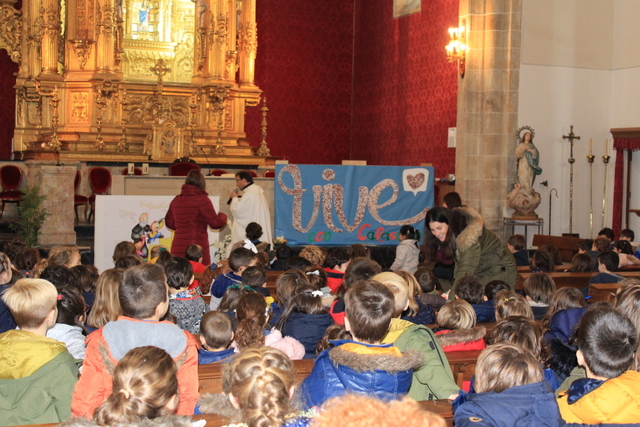 Como gesto, representantes de cada clase han pegado en un cartel las aptitudes que definían a San José de Calasanz, así los niños le han definido como una persona hospitalaria, bondadoso, servicial, entre otros.