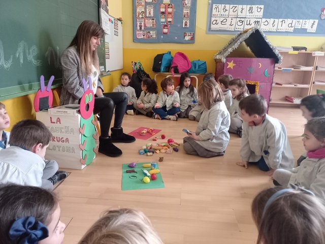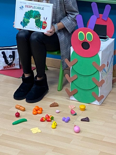 Los alumnos de tercer curso de infantil hemos aprendido a distinguir la comida saludable a través del cuento de la Oruga Glotona con dinámicas como adivinanzas y clasificar comida.
