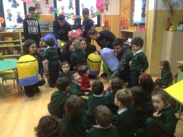 Los alumnos de Centro Infantil e Infantil han disfrutado con esta peculiar visita.  Han podido conocer a nuestros cabezudos, se han reído con ellos, aunque al principio alguno tuviera un poco de miedo, han jugado y los más valientes se han probado qué es ser un cabezudo.