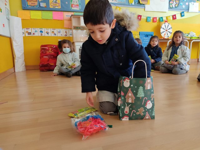 Como nos hemos portado fenomenal durante este año, con ayudada del AMPA del colegio, nos han traído unos regalos para compartir en nuestras clases. Para Centro Infantil 0, 1 y 2 años cuentos y construcciones, y para 1º, 2º y 3º de infantil nos han dejado letras y números para jugar aprendiendo en nuestras mesas de luz.