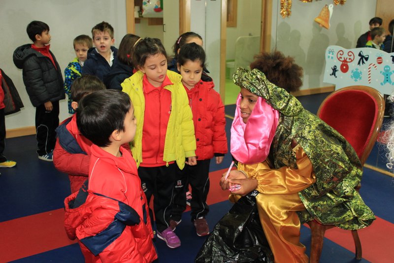 Los alumnos de Centro Infantil e Infantil han recibido la visita de los Reyes Magos.  Con muchos nervios han escuchado las palabras y recomendaciones que les ha hecho el Rey Melchor. También les han podido preguntar todas las dudas que quisieran, y antes de volver a la clase hemos cantado unos villancicos.