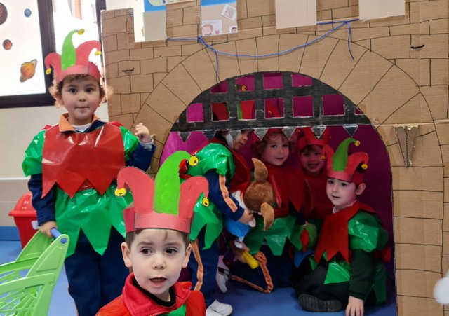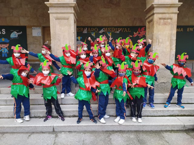 A lo largo de la mañana hemos experimentado diversas emociones. Sorpresa al llegar al colegio y ver a nuestros maestros disfrazados, alegría al conocer que nosotros también tendríamos disfraz y felicidad al jugar con nuestros amigos “juglares”.