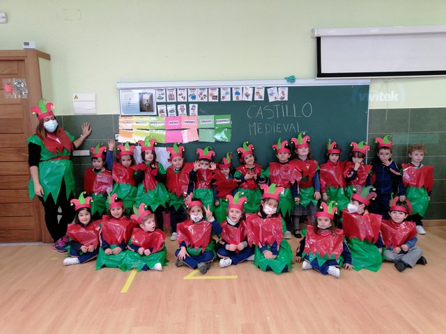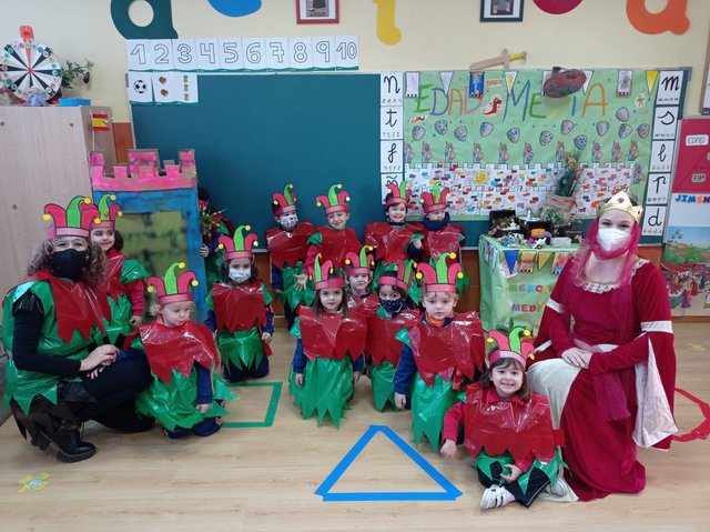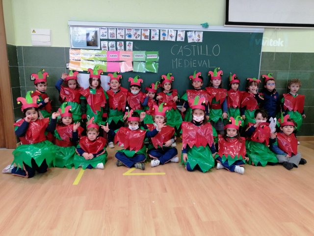 Nos hemos puesto nuestros trajes de juglares y hemos disfrutado con nuestros maestros a través de juegos, canciones y bailes, como hacían los juglares en la Edad Media.