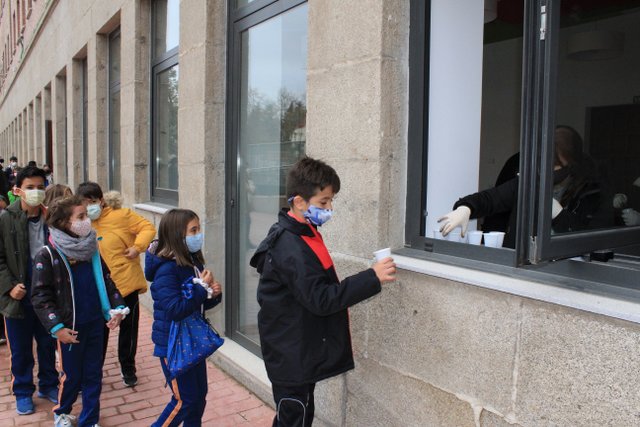 La AMPA del colegio, junto con el Padre Jesús y el Padre Luís, han sido los encargados de organizar la actividad, y repartir a los alumnos las castañas asadas.