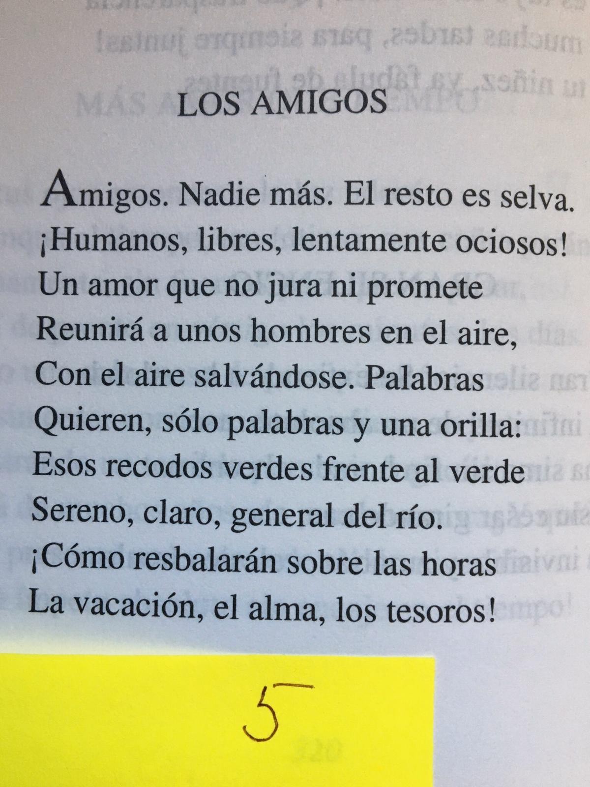Amigos. Nadie más. El resto es selva.¡Humanos, libres, lentamente ociosos!Un amor que no jura ni prometeReunirá a unos hombres en el aire,Con el aire salvándose. PalabrasQuieren, ...